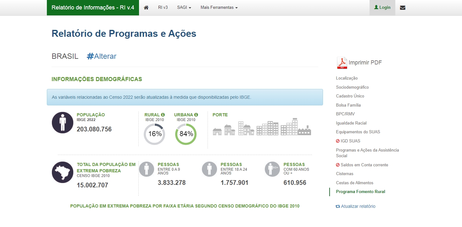 O que é Relatório de Informações de Programas e Ações do Ministério do Desenvolvimento e Assistência Social, Família e Combate à Fome.