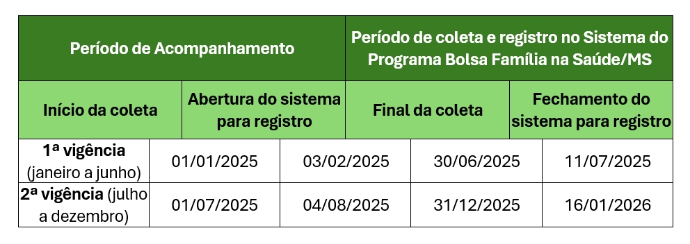 QUADRO I: Calendário do Acompanhamento das Condicionalidades de Saúde – Exercício de 2025